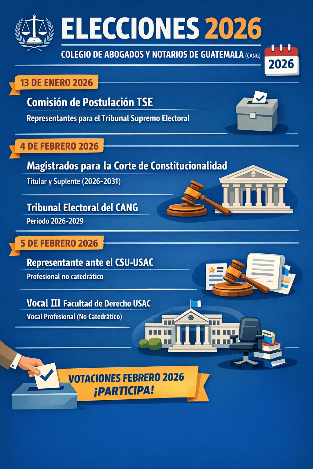 Este es un momento histórico para el gremio jurídico en Guatemala. El año 2026 no es un periodo cualquiera; es el año en que el Colegio de Abogados y Notarios de Guatemala (CANG) ejerce su mayor cuota de poder político-institucional al influir en la integración de la Corte de Constitucionalidad, el Tribunal Supremo Electoral y la Universidad de San Carlos.